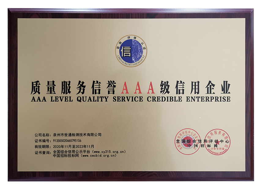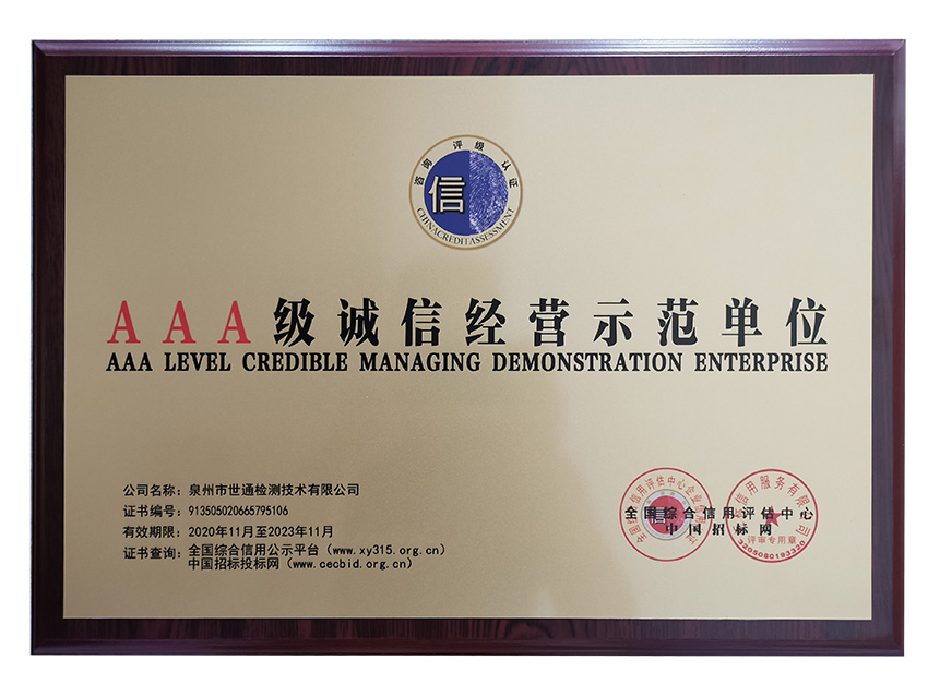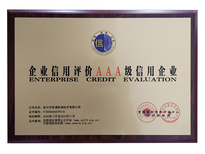 首页 > 证书展示 > AAA信用评价
