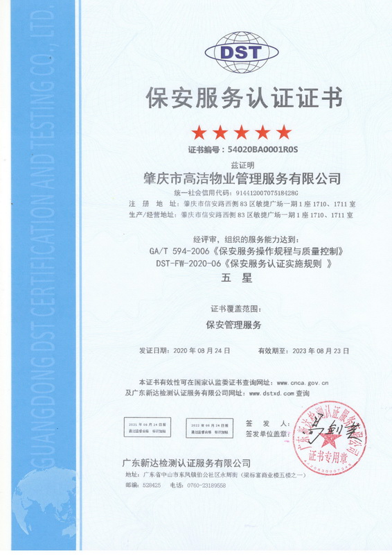 保安服务认证