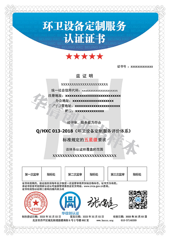 Q/HXC013-2018 《环卫设备定制服务评价体系》